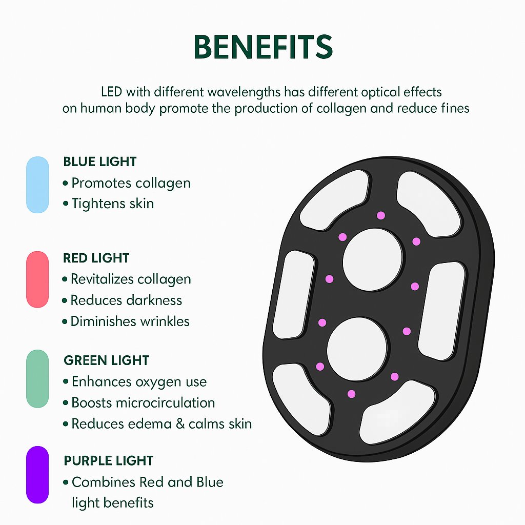 Radio Frequency (RF): Tightens, smooths, and improves elasticity with red-light collagen support